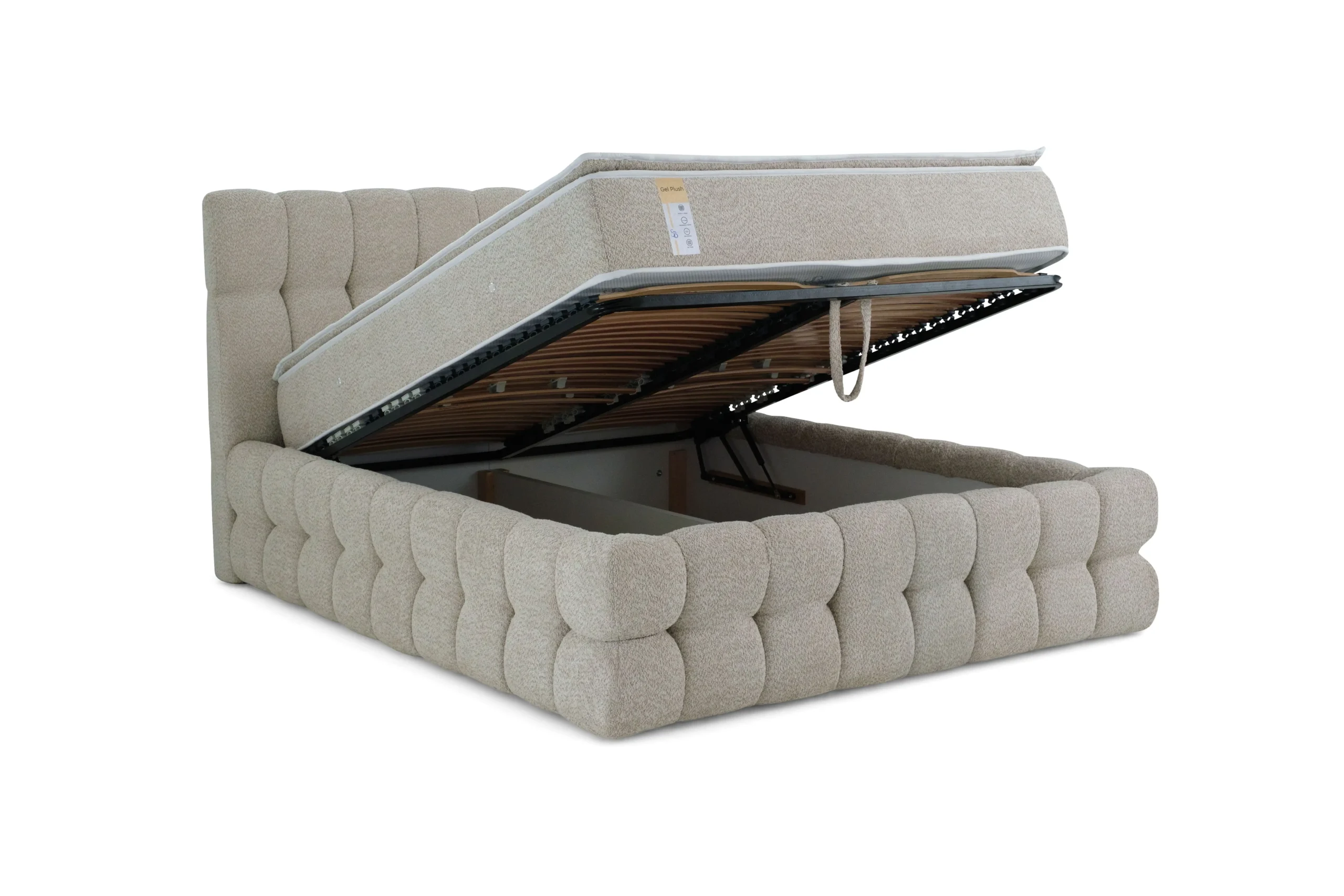Krevet Valente spaja moderan dizajn i vrhunsku funkcionalnost. Opremljen kvalitetnim Latoflex mehanizmom, omogućava lak pristup spremištu i optimalnu potporu madracu. Dostupan u dimenzijama 160×200 cm i 180×200 cm, idealan je izbor za udoban i praktičan prostor za spavanje.